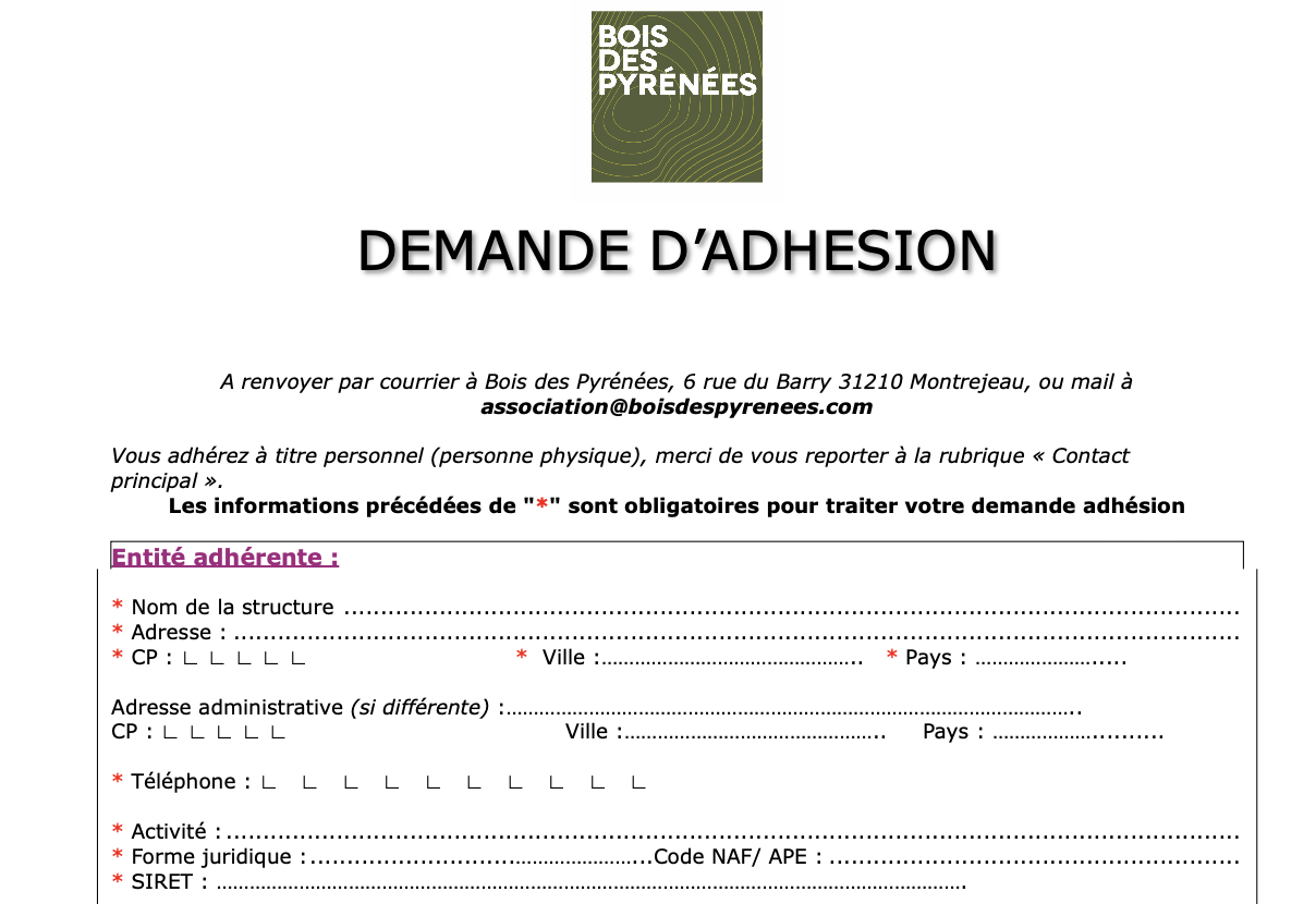 Dossier de demande d’adhésion